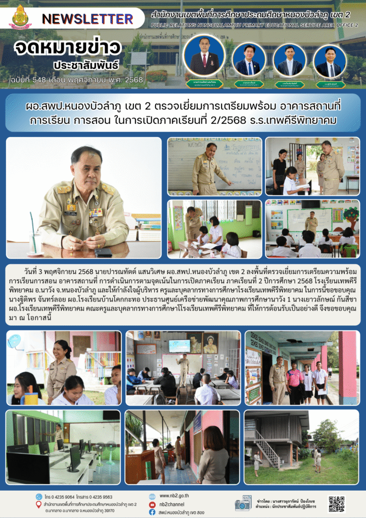 วันที่ 3 พฤศจิกายน 2568 นายปารณทัตต์ แสนวิเศษ ผอ.สพป.หนองบัวลำภู เขต 2 ลงพื้นที่ตรวจเยี่ยมการเตรียมความพร้อมการเรียนการสอน อาคารสถานที่ การดำเนินการตามจุดเน้นในการเปิดภาคเรียน ภาคเรียนที่ 2 ปีการศึกษา 2568 โรงเรียนเทพคีรี พิทยาคม อ.นาวัง จ.หนองบัวลำภู และให้กำลังใจผู้บริหาร ครูและบุคลากรทางการศึกษาโรงเรียนเทพคีรีพิทยาคม ในการนี้ขอขอบคุณ นางฐิติพร จันทร์ลอย ผอ.โรงเรียนบ้านโคกกะทอ ประธานศูนย์เครือข่ายพัฒนาคุณภาพการศึกษานาวัง 1 นางเยาวลักษณ์ กันสีชา ผอ.โรงเรียนเทพคีรีพิทยาคม คณะครูและบุคลากรทางการศึกษาโโรงเรียนเทพคีรีพิทยาคม ที่ให้การต้อนรับเป็นอย่างดี จึงขอขอบคุณมา ณ โอกาสนี้