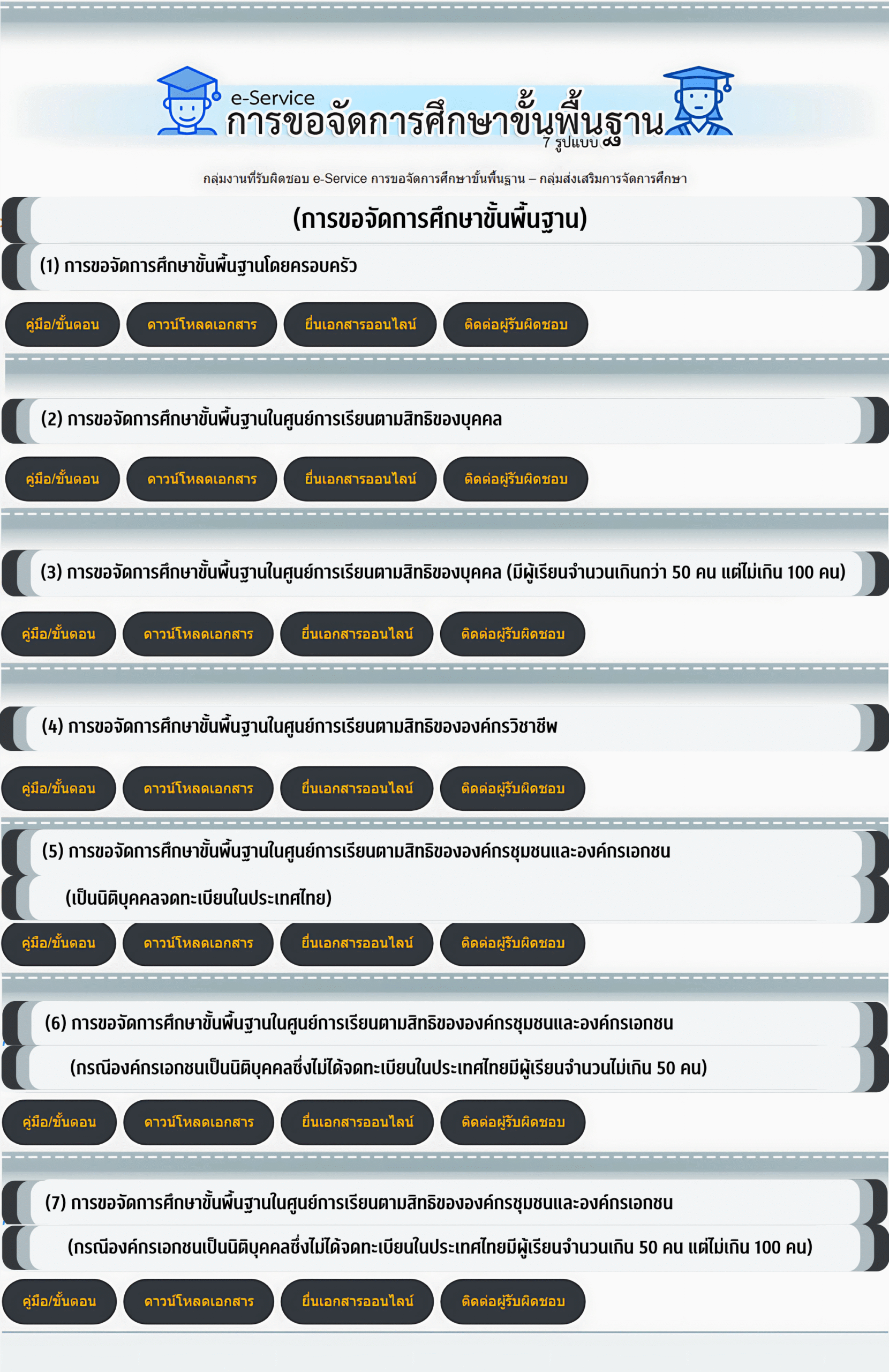 e-Service การขอจัดการศึกษาขั้นพื้นฐาน 7 รูปแบบ